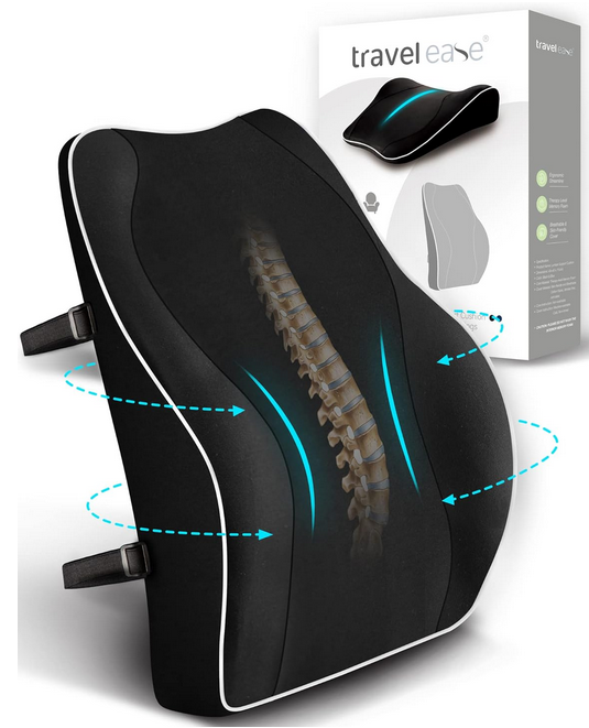 👉 Cojín lumbar viscoelástico con firmeza media y correa ajustable